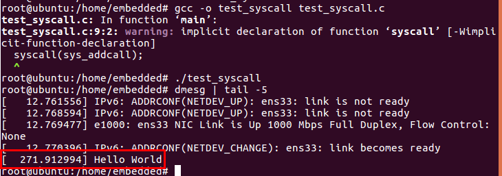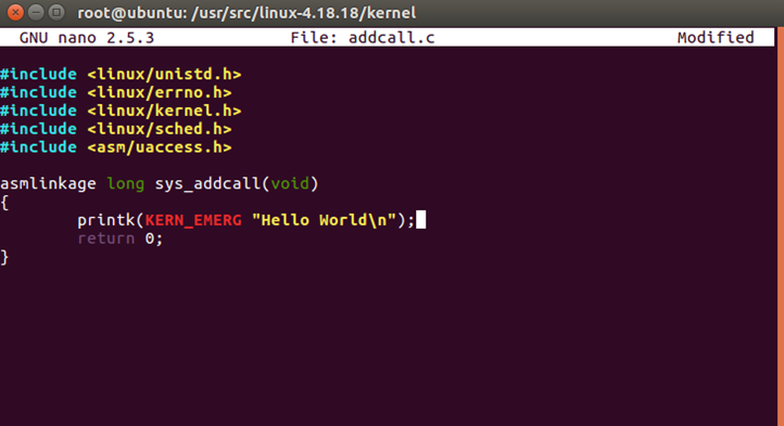 printk(KERN_EMERG "Hello World\n");