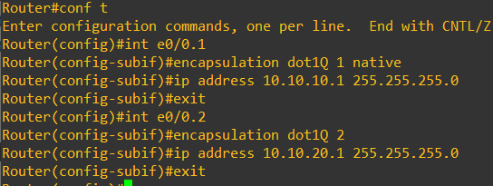 Router(config-subif)# ip address 10.10.20.1 255.255.255.0