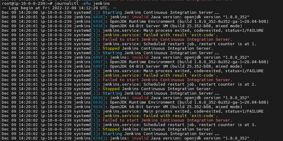 jenkins: invalid Java version: openjdk version "1.8.0_352"라고 나와있다.- 해당 jenkins 버전이 java 1.8을 지원안하여 발생