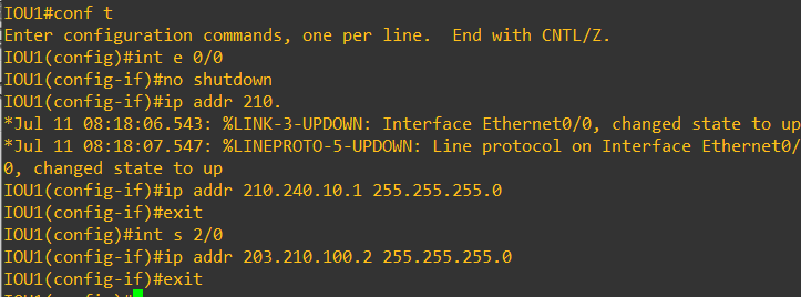 Router-A(config-if)# ip addr 210.240.10.1 255.255.255.0