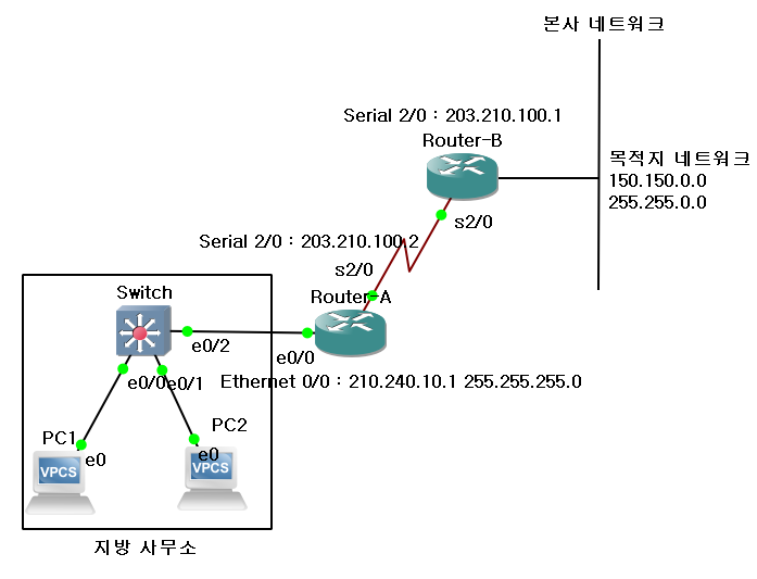 - 지방 사무실 라우터는 경로가 하나만 존재하는데 무조건 본사 네트워크에 접속해야 한다.