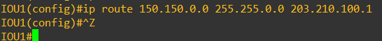 Router-A(config)# ip route 150.150.0.0 255.255.0.0 203.210.100.1