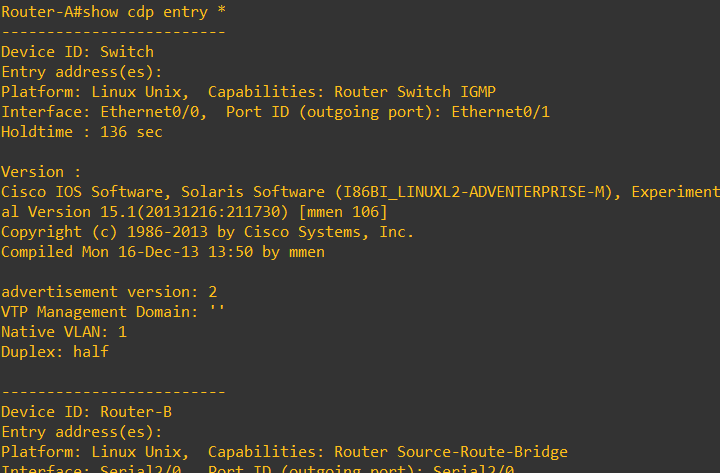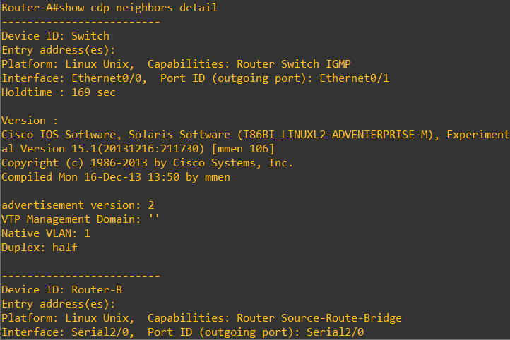 show cdp entry *orshow cdp neighbors detailsshow cdp neighbors보다 많은 정보 확인 가능