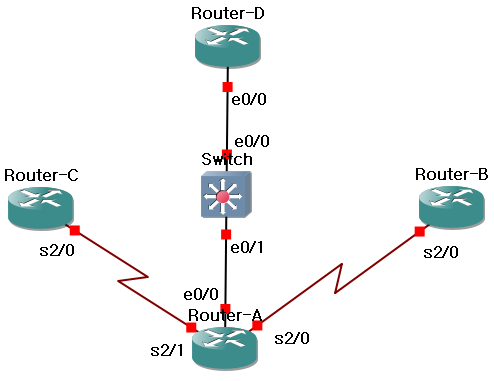 - Router D는 직접적으로 연결되지 않고 스위치를 통해 연결되어 있어 나오지 않음