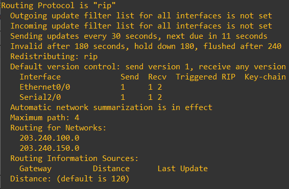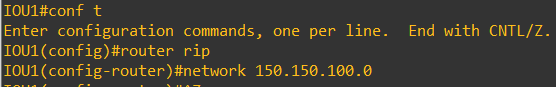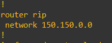 router rip는 현재 라우터에서 RIP 라우팅을 사용하겠다는 명령어입니다.network 150.150.100.0은 라우팅을 사용할 네트워크를 지정하는 명령어로 서브넷 마스크를 입력하지 않고 Classful하게 모든 네트워크를 인식합니다.- 그렇기 때문에