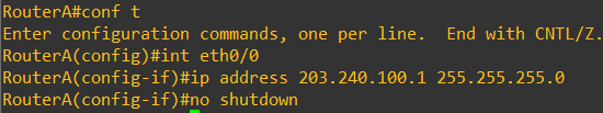 RouterA(config-if)# ip address 203.240.100.1 255.255.255.0