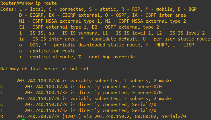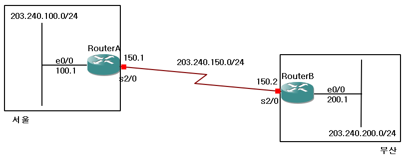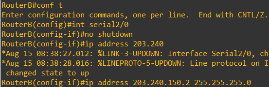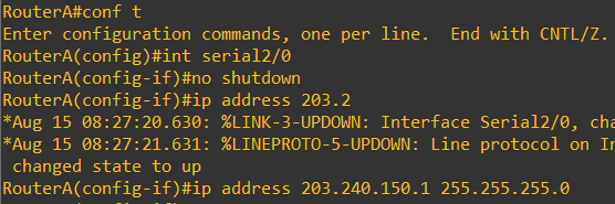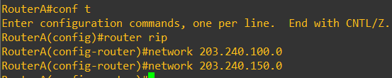 RouterA(config-if)# ip address 203.240.150.2 255.255.255.0