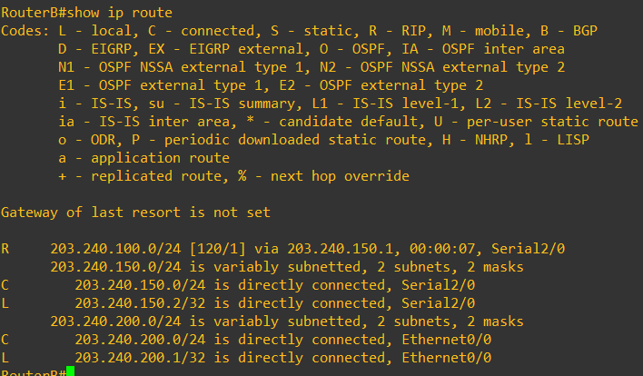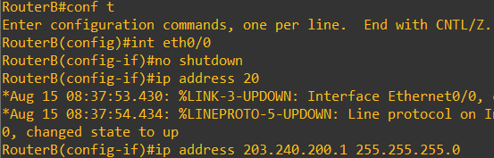 RouterA(config-if)# ip address 203.240.200.1 255.255.255.0