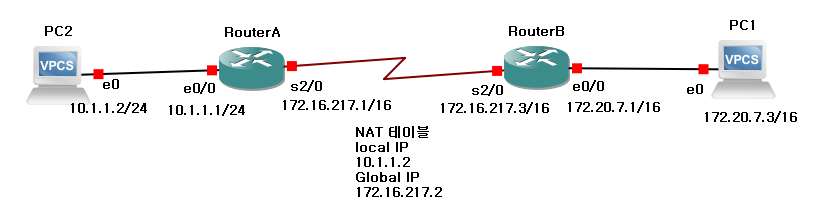 RouterA(conf)# ip nat pool global 172.16.217.2 172.16.217.2 netmask 255.255.0.0