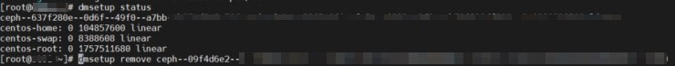 root@localhost ~]$ dmsetup status // 삭제할 파티션 이름 확인