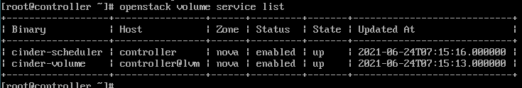 root@controller$ systemctl start openstack-cinder-api.service openstack-cinder-scheduler.service