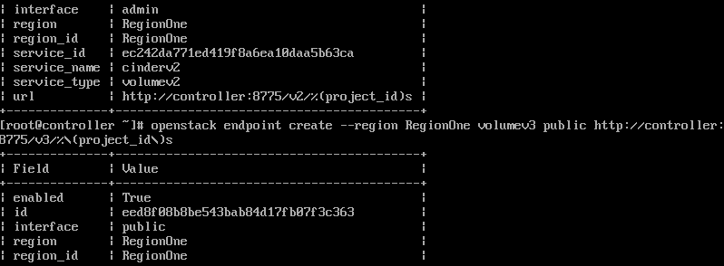 root@controller$ openstack endpoint create --region RegionOne volumev3 public http://controller:8776/v3/%\(project_id\)s